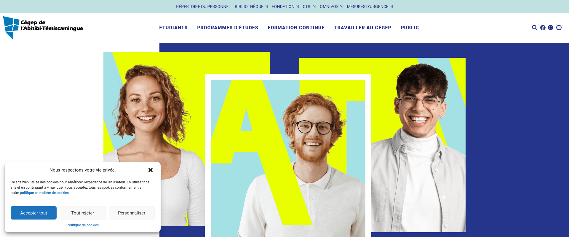 C?GEP d'Abitibi-T?miscamingue is a unique learning environment, combining comprehensive classroom instruction with real-life, hands-on experience. The hands-on component is provided through supervised work internships and industrial relations courses, where faculty closely shadow each student to ensure the optimal learning experience. C?GEP d'Abitibi-T?miscamingue is open to students from Quebec and other provinces.
