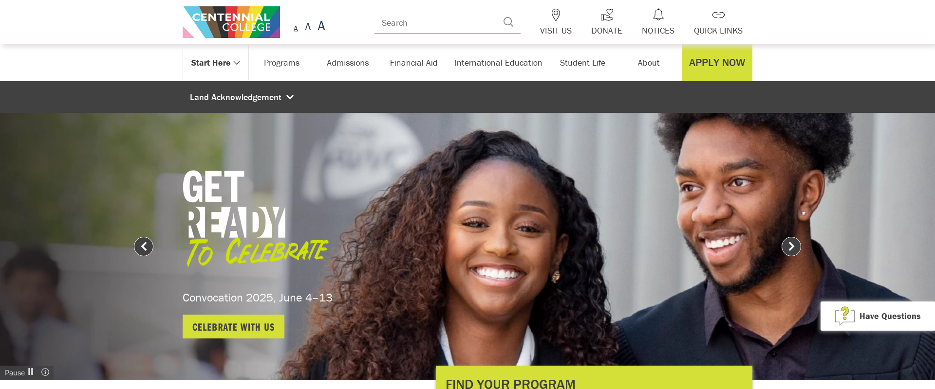 With over 25,000 undergraduate students, 7,000 graduate students, and 1,300 faculty members, Centennial College is one of the largest of the 23 colleges in the Province of Ontario. Of the 7,000 graduate students, approximately 20% come from outside of Canada. This diverse student body creates a global learning community that shapes the college experience.